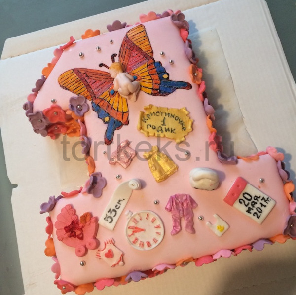 Торт Медовик с кремом Пломбир и прослойкой из смородинового конфитюра на 1 годик для Кристиночки c применением ручной росписи. Состав: мука, яйца, мед, сода, сливочное масло, сливки, сгущеное молоко, молоко, смородина красная и черная, пектин, мастика, кондитерские бусины, пищевая краска. Вес 4 кг, Размер: ширина 30 см, длина 33 см, высота 7см.